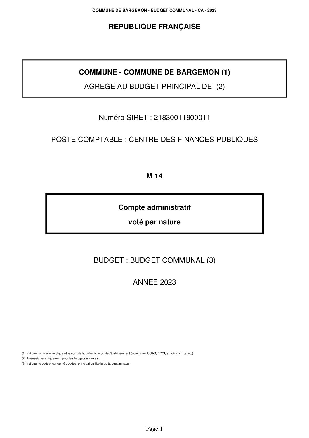 Le compte administratif (CA) retrace l’ensemble des mouvements, c’est à dire l’ensemble des recettes et des dépenses effectivement réalisées par la commune sur une année. Il doit être présenté au Conseil municipal dans les six mois qui suivent la fin de l’exercice, donc au plus tard le 30 juin de l’année suivante.