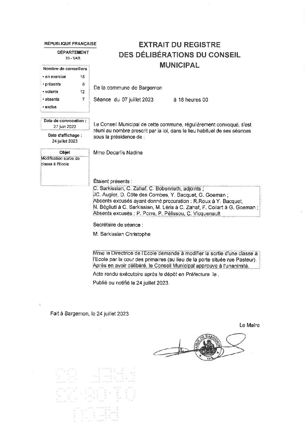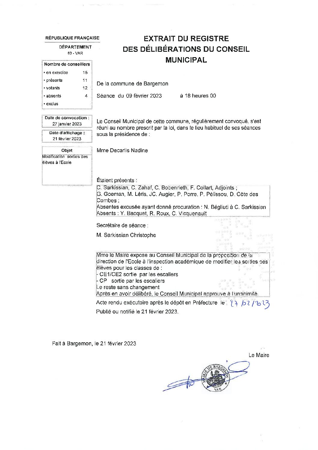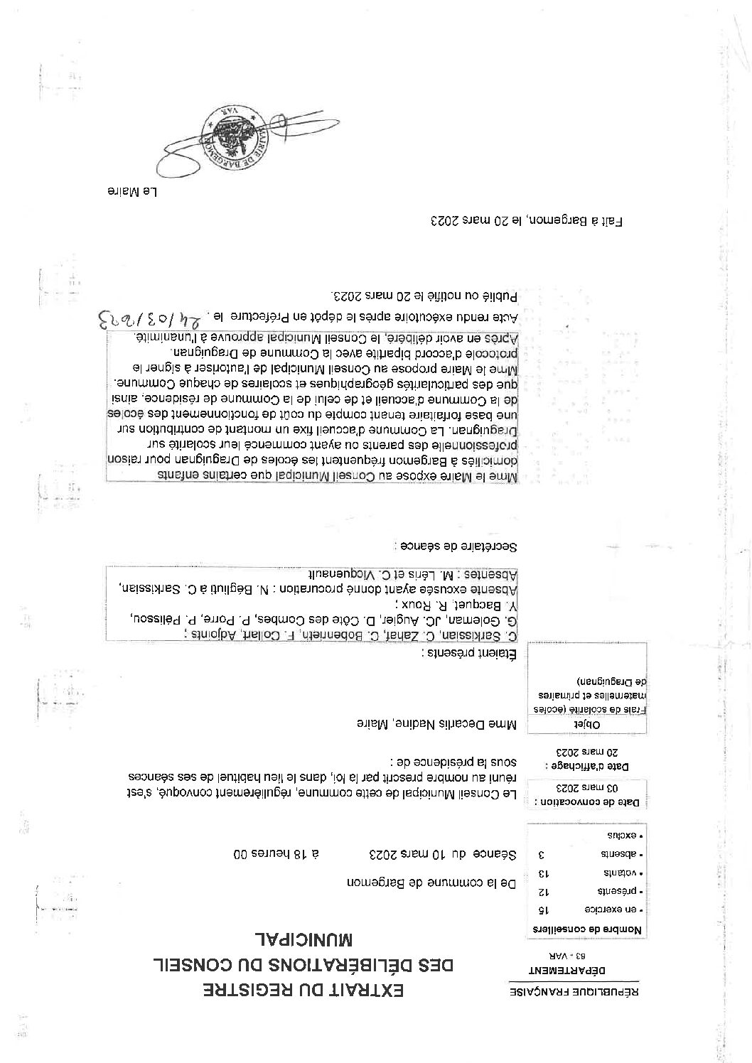 Délibération n° 23 - Convention triannuelle réciprocité scolarisation élèves Bargemon et Claviers