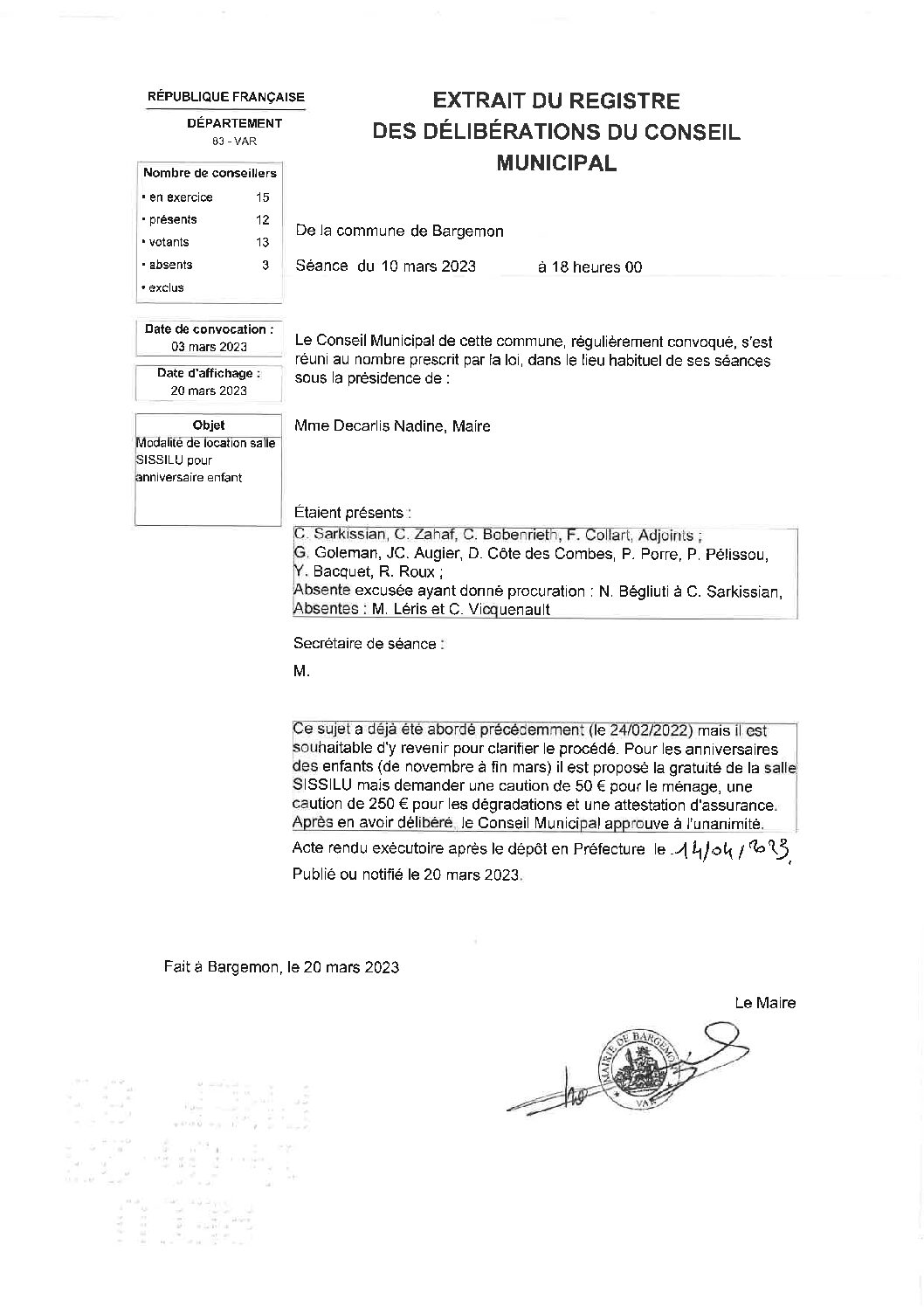 Délibération n° 11 - Modalités location salles Sissilu anniversaire enfants