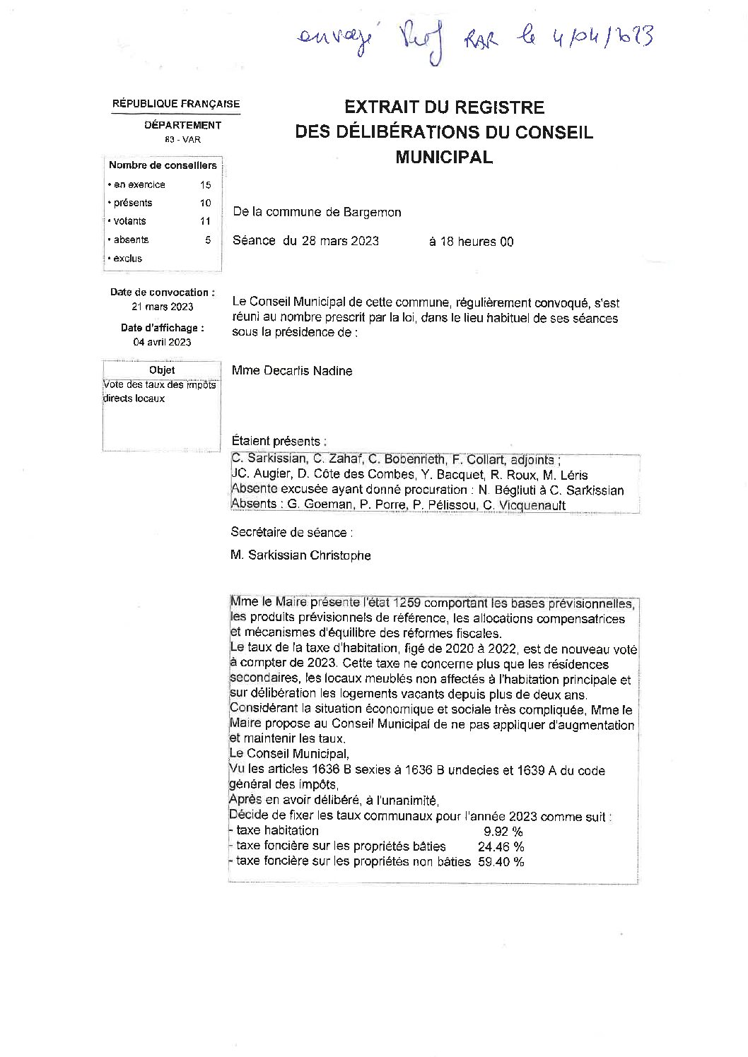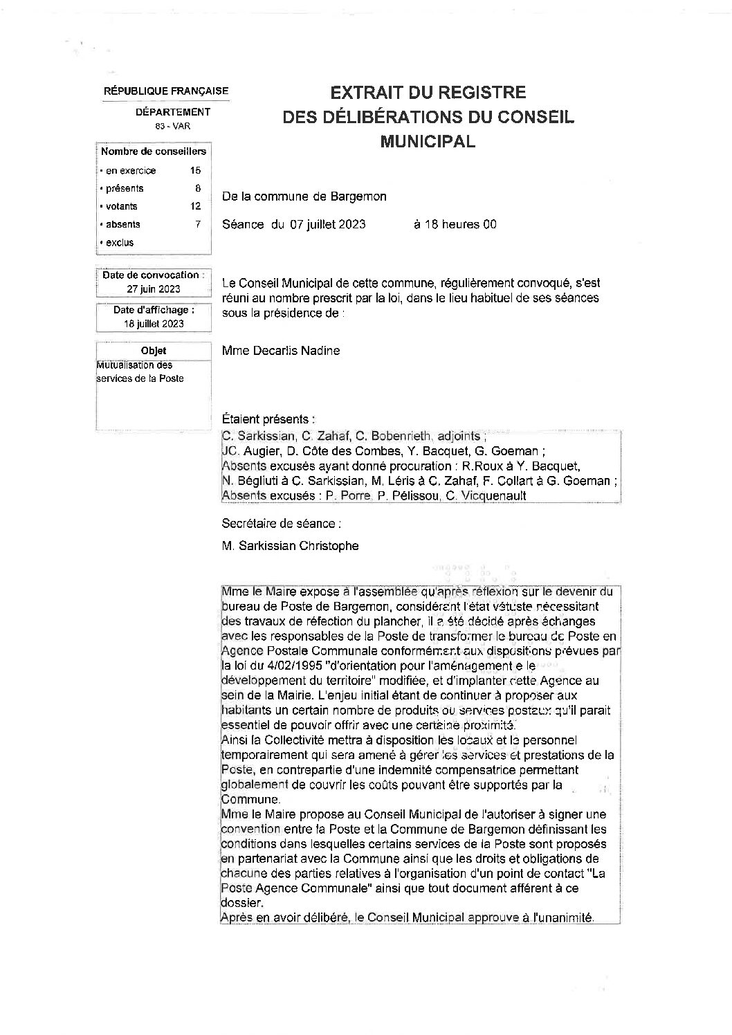 Délibération n° 5 bis - Liste dénominations voies de Bargemon