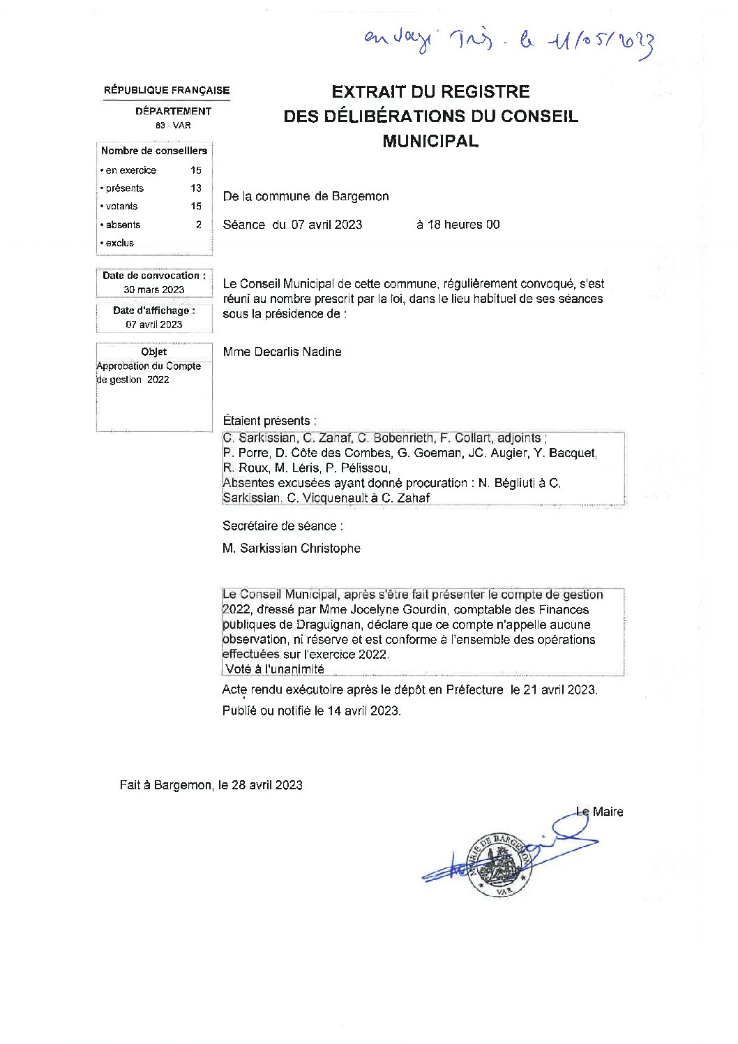 Délibération n° 14 - Approbation comptes de gestion 2021