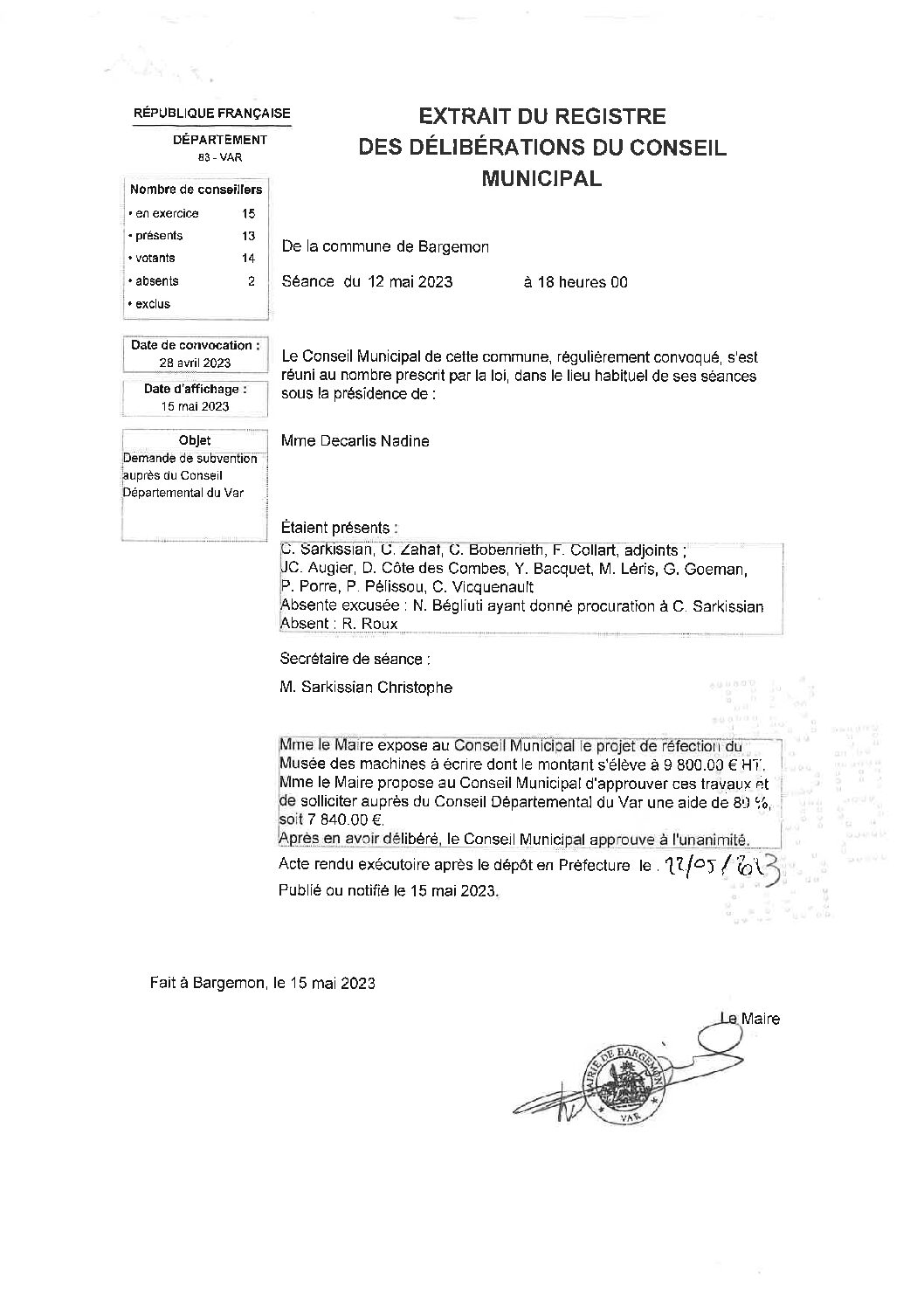 Délibération n° 16 - Demande subvention réfection musée mécanographie