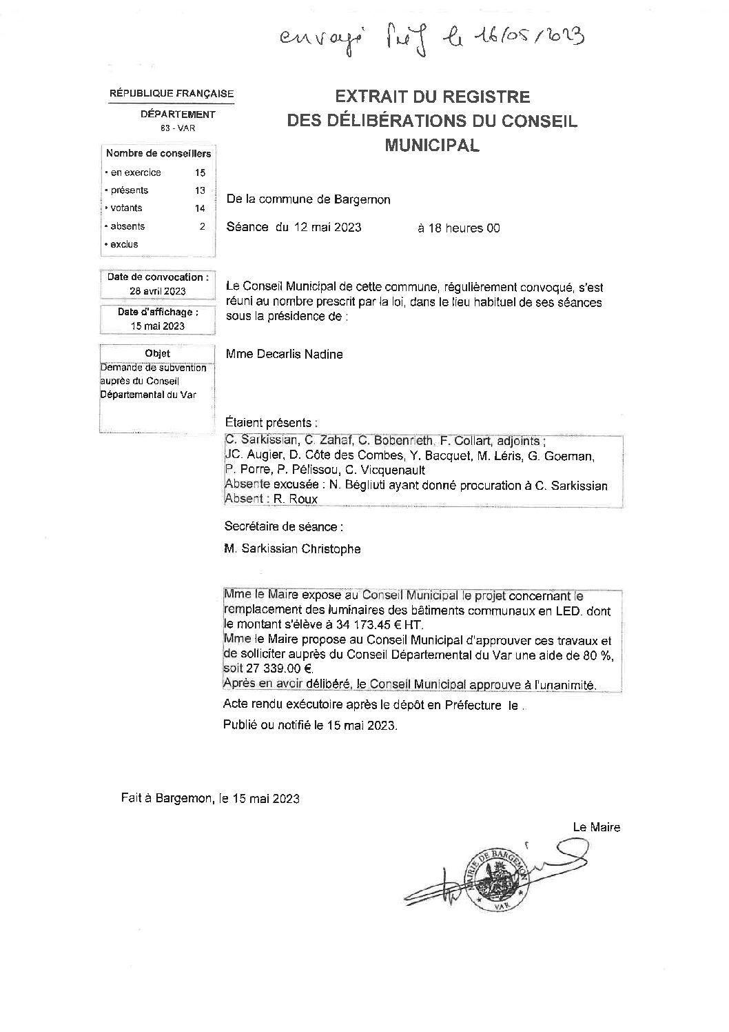 Délibération n° 17 - Demande subvention remplacement luminaires en LED
