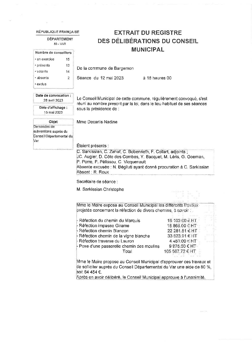 Délibération n° 18 - Demande subvention CD Var réfection chemins