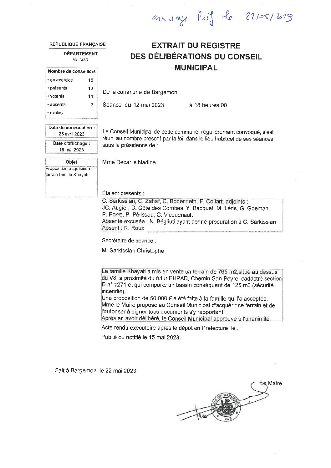Délibération n° 20 - Proposition acquisition terrain Khayati