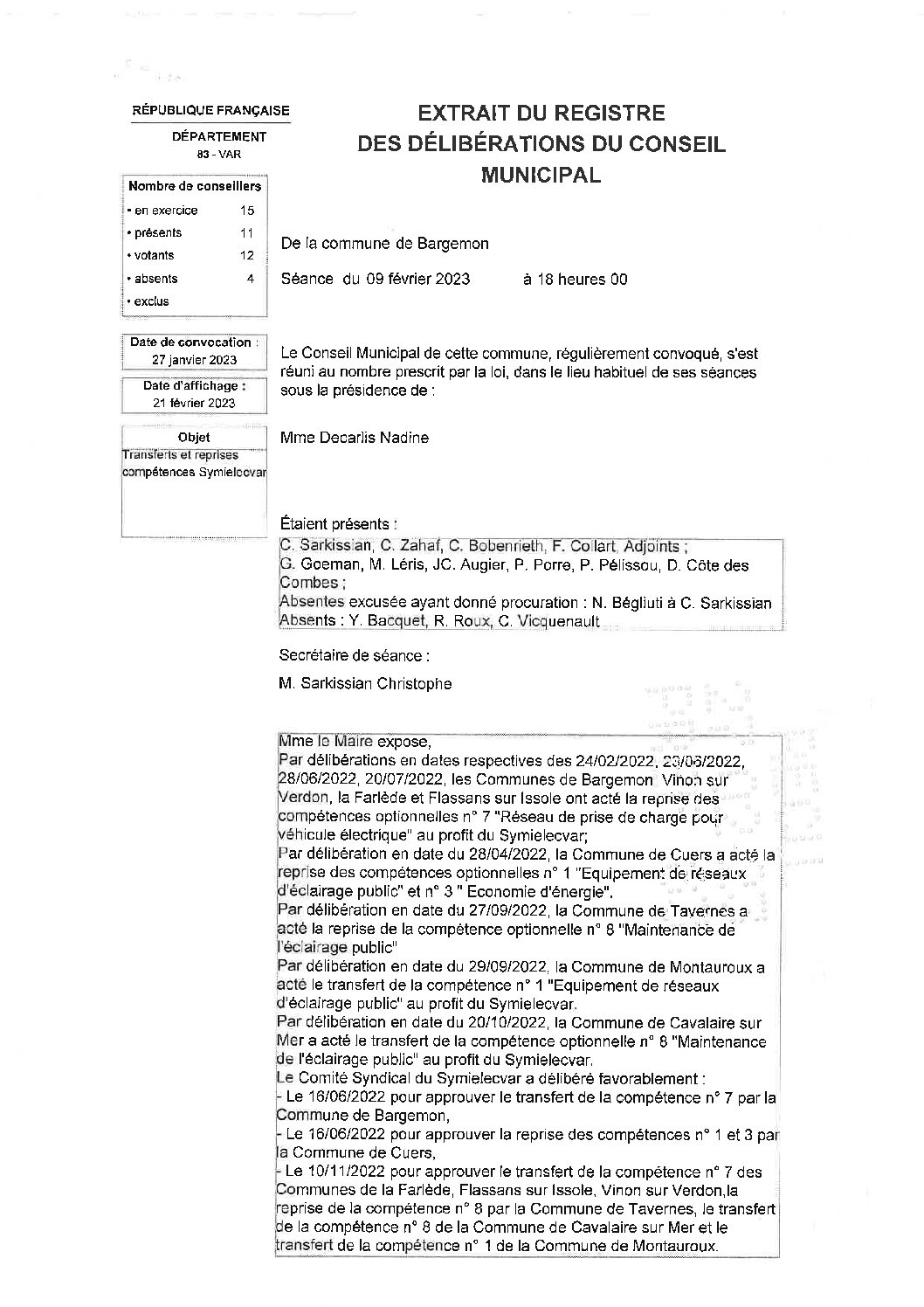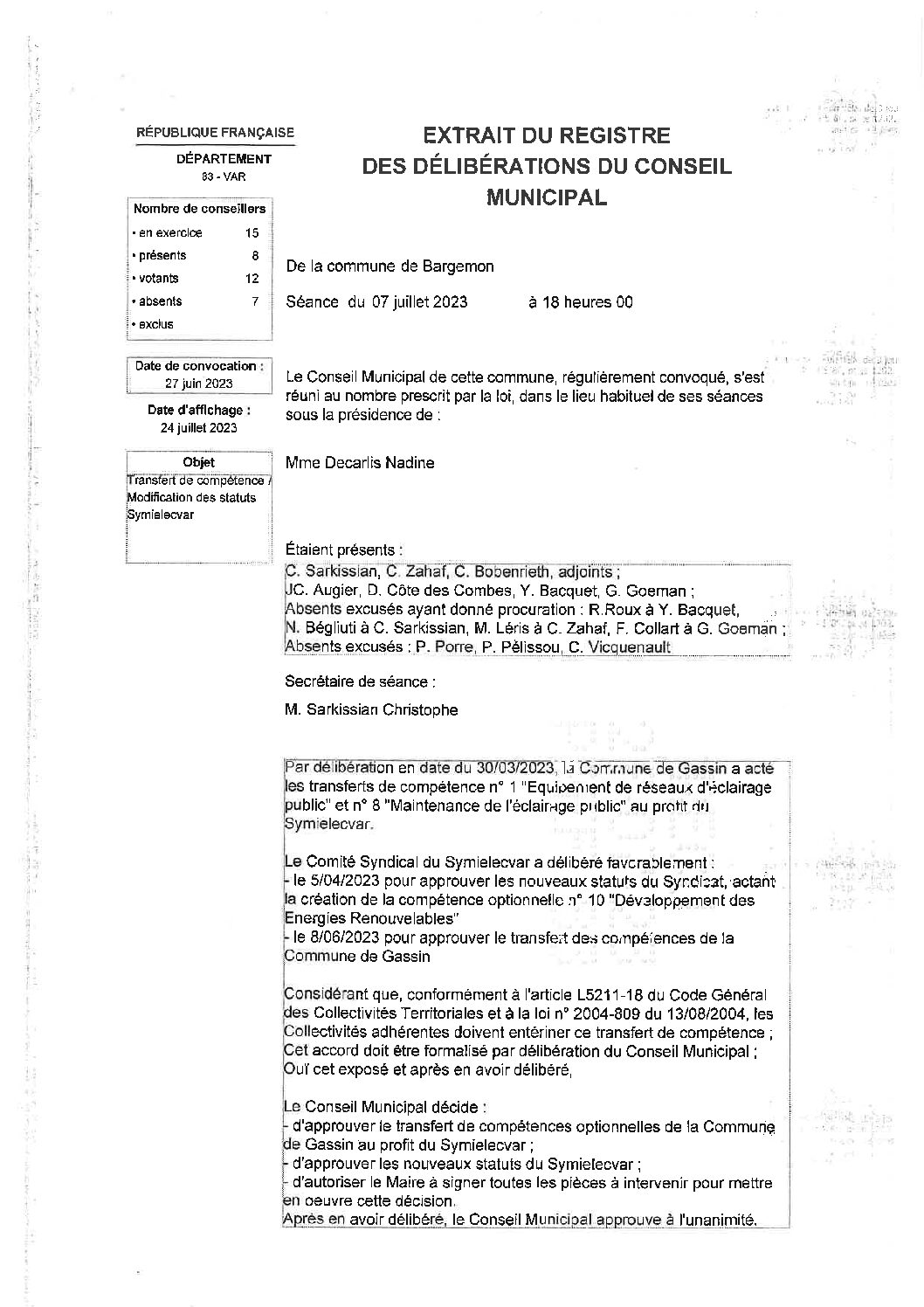 Délibération n° 19 - Transfert compétence Commune du Val à Symielec Var