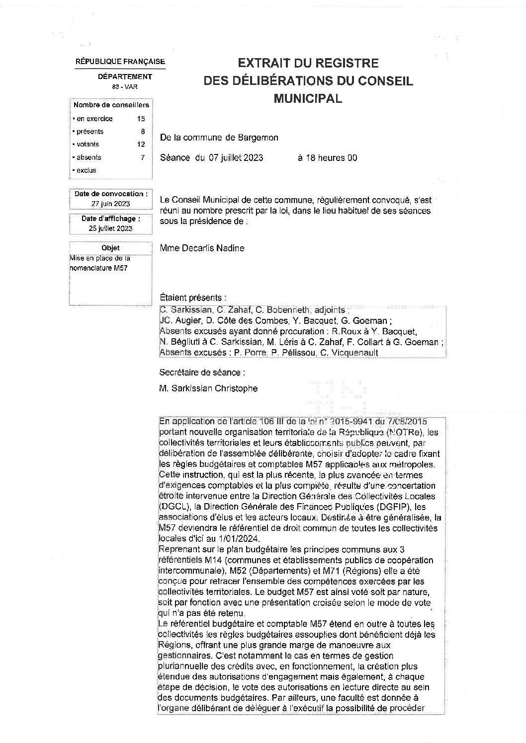 Délibération n° 27 - Mise en place nomenclature comptable M57
