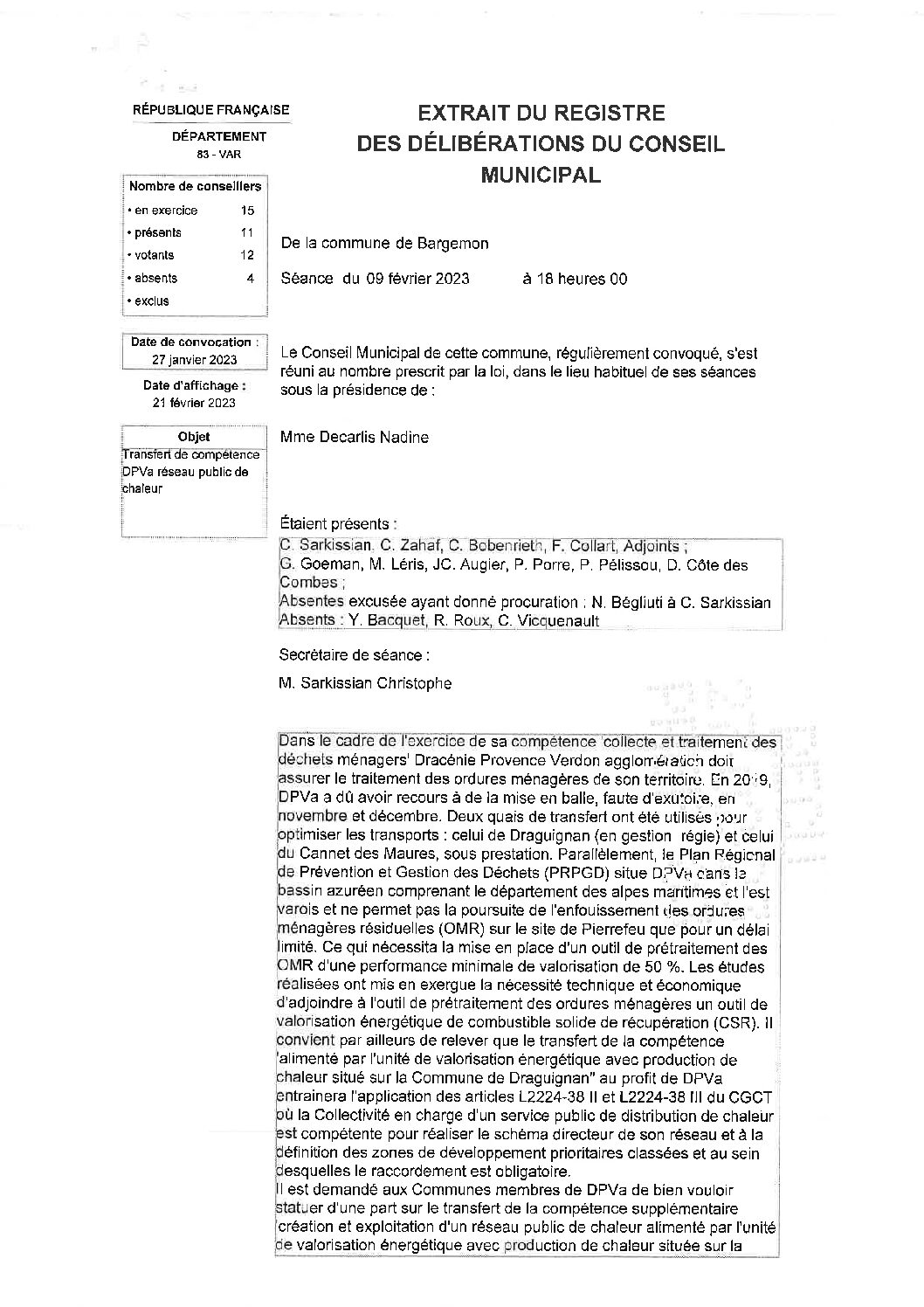 Délibération n° 4 - Transfert compétences réseau chaleur DPVa
