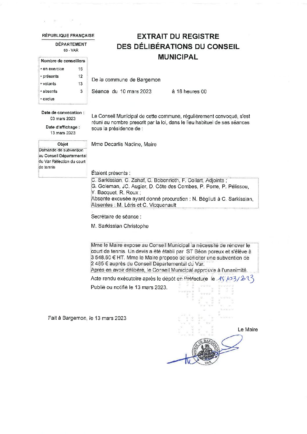 Délibération n° 8 - Demande subvention CD Var réfection court tennis