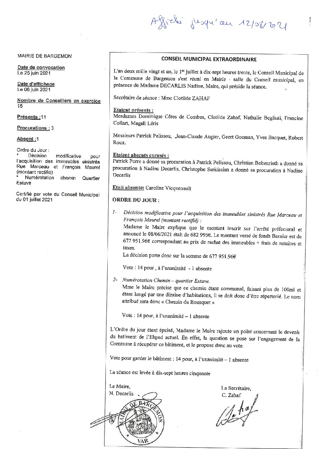– Décision modificative pour l’acquisition des immeubles sinistrés rue Marceau et François Maurel