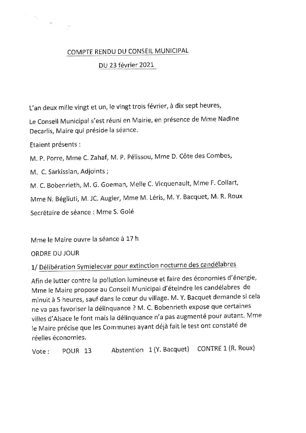 – Délibération Symielecvar pour extinction nocturne des candélabres