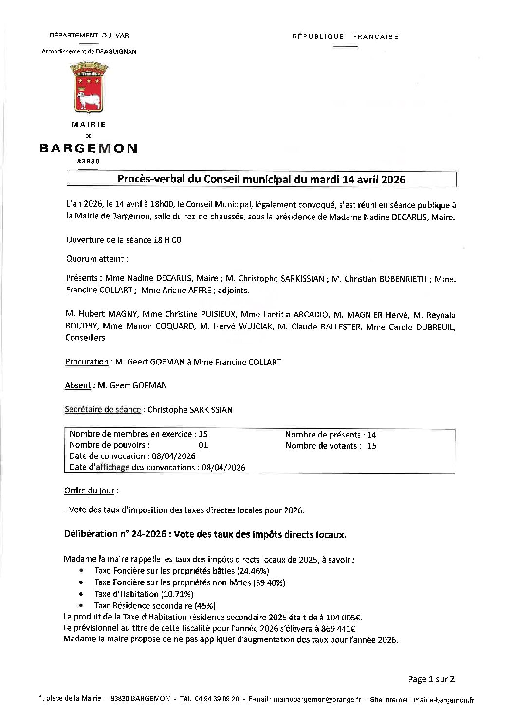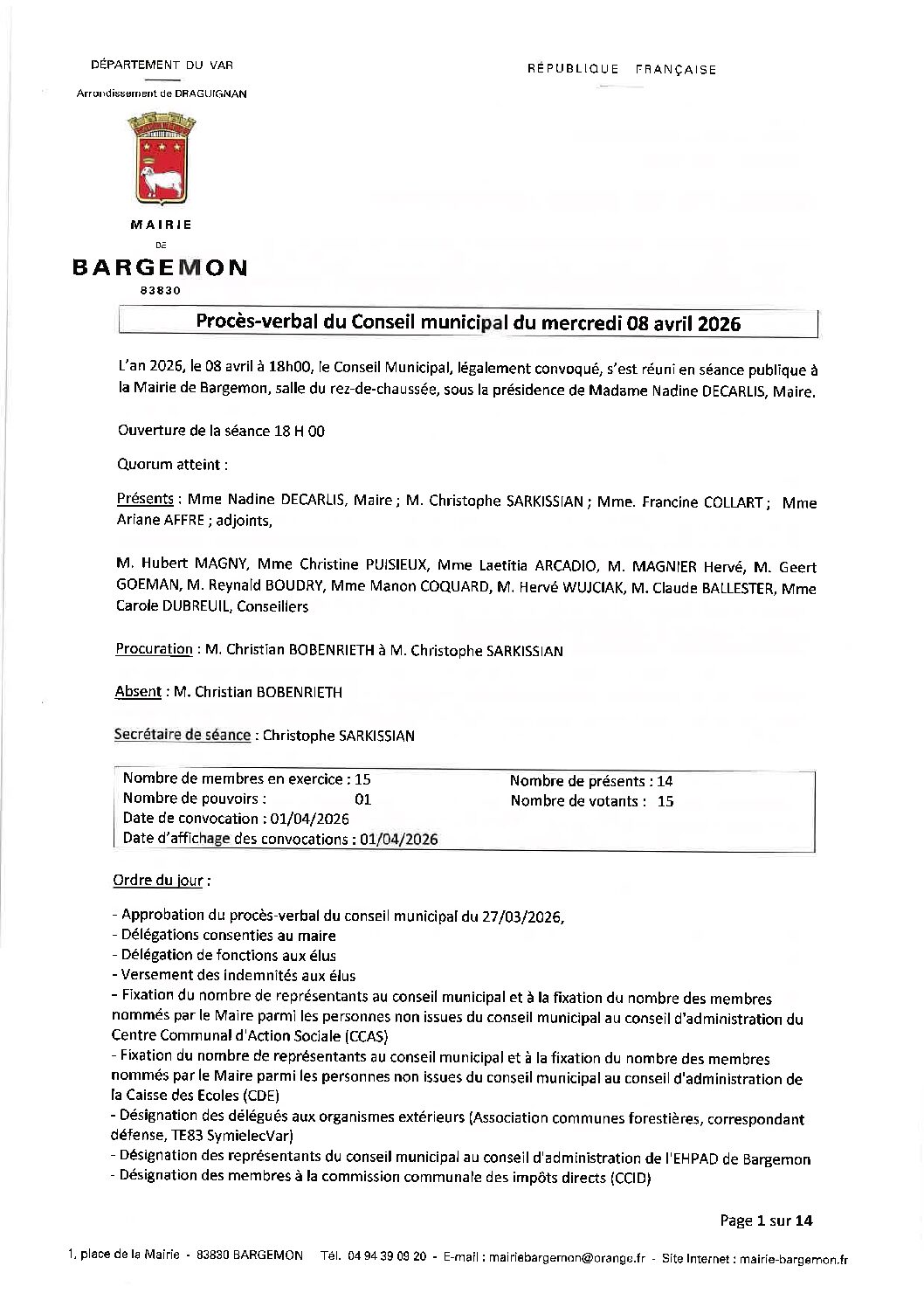 Conseil municipal du 14 avril 2026