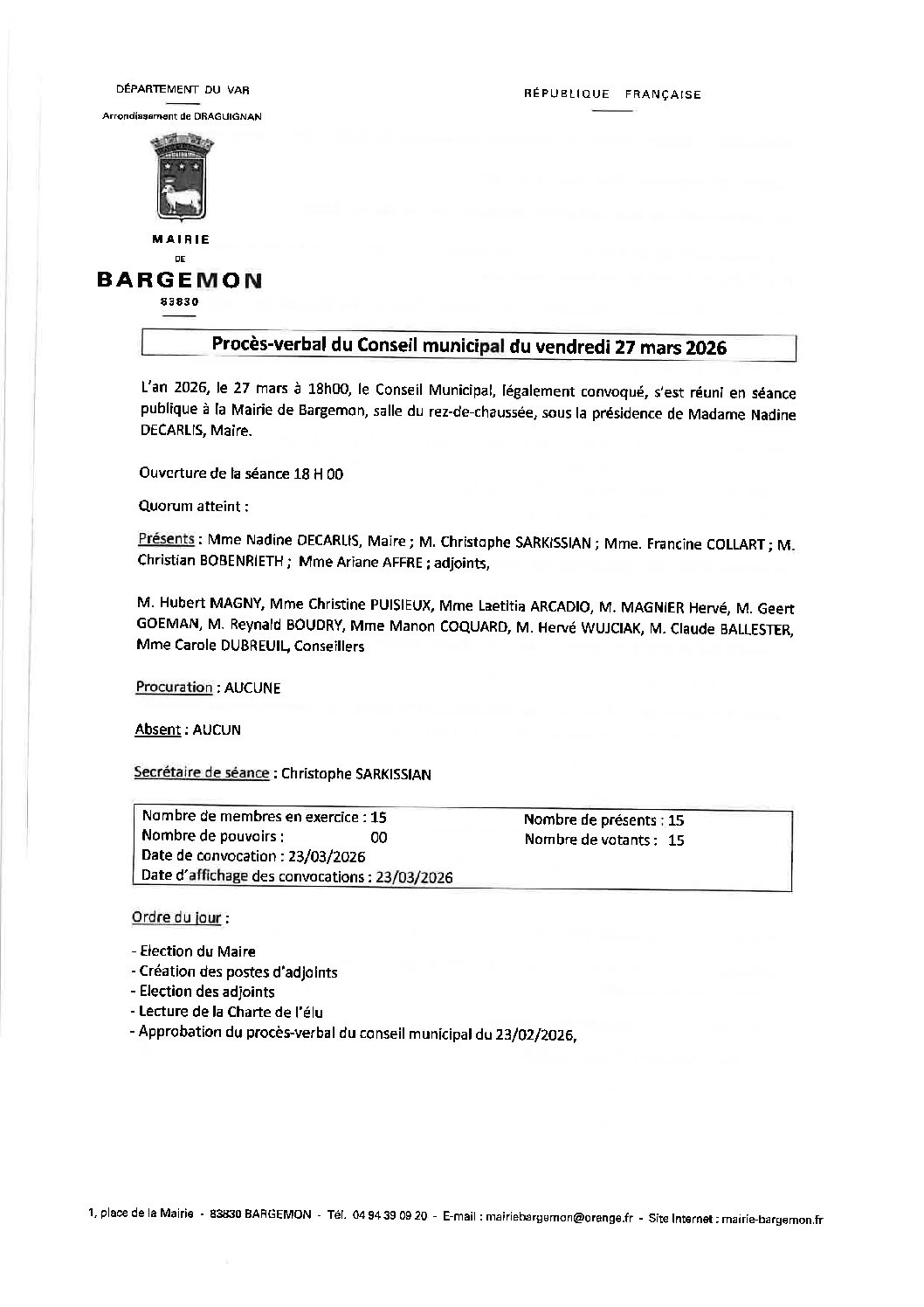 Conseil municipal du 27 mars 2026
